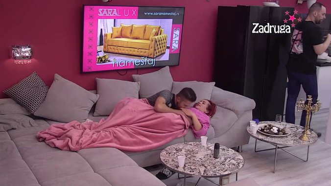 Njih dvoje počeli su strastveno da se ljube nasred pušionice, a onda ju je Bilal prebacio u svoje krilo. Iako je delovalo da je par na korak do vrele akcije, cimeri su ih prekinuli i oni su legli u dnevnu sobu, pa nastavili gde su stali.